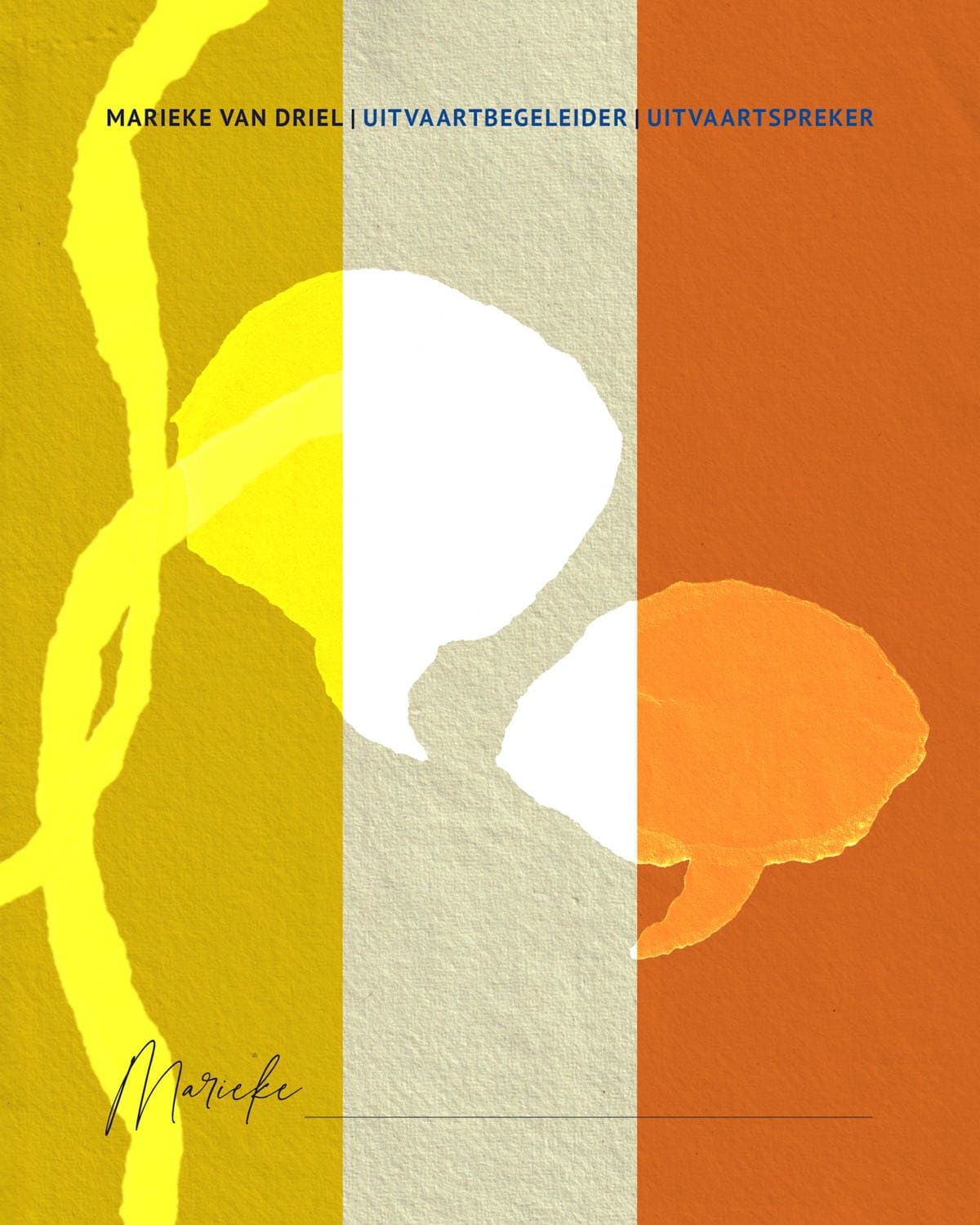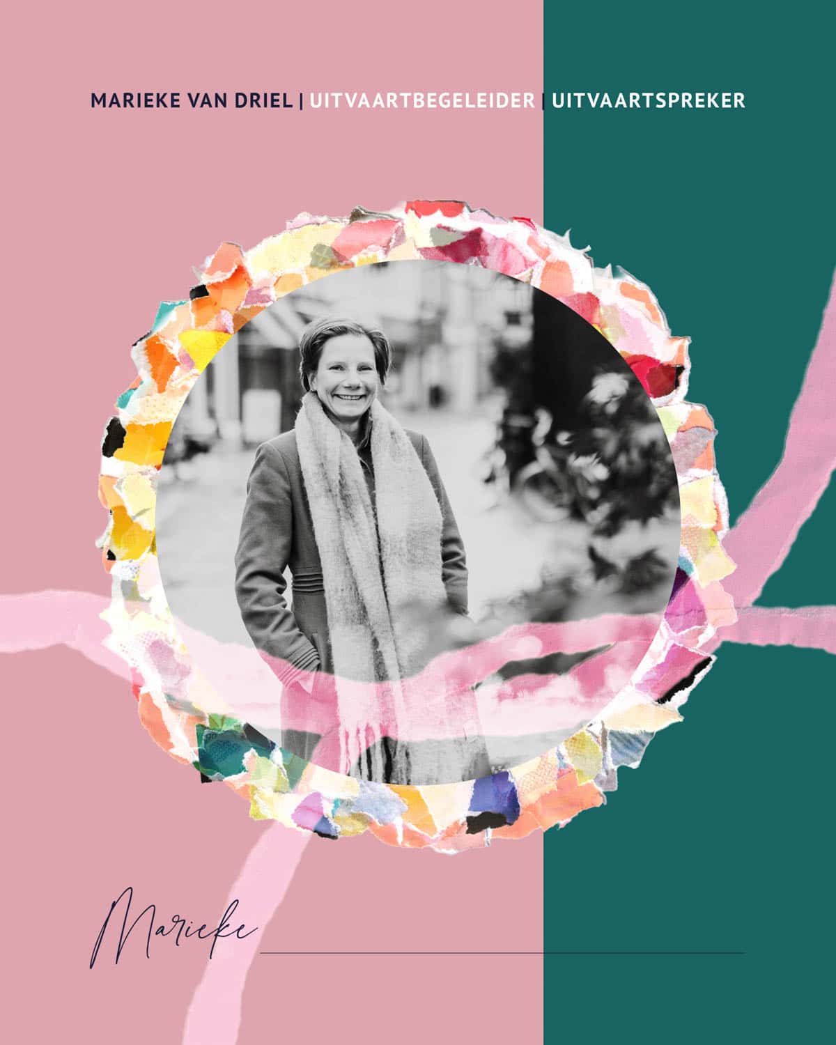 Marieke van Driel is ondernemer en geeft uiting aan wat er écht toe doet - als uitvaartbegeleider, uitvaartspreker, ritueelbegeleider, spreker, dagvoorzitter, interviewer en presentator. Haar wens: “Ontwerp een huisstijl, website en drukwerk dat ik kan zetten voor alle facetten van mijn bedrijf.”